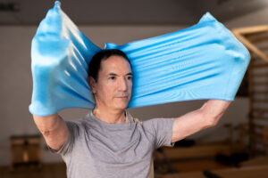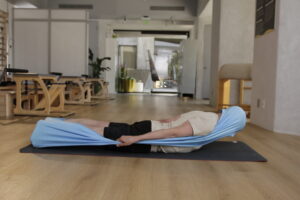 The right size of Stretch-eze® depends on both your body type and the exercise. Pay attention to how the fabric stretches and supports your body — the “sweet spot” is when the band feels responsive, even, and comfortable. As you get more familiar with the Stretch-eze®, you’ll gain confidence in how much fabric you want to play with!