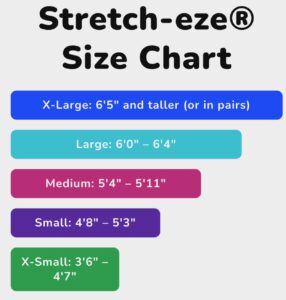 Most exercises tolerate some variability in size, but your comfort and range of motion are still key indicators. Height recommendations on the Stretch-eze® Shop are as follows: